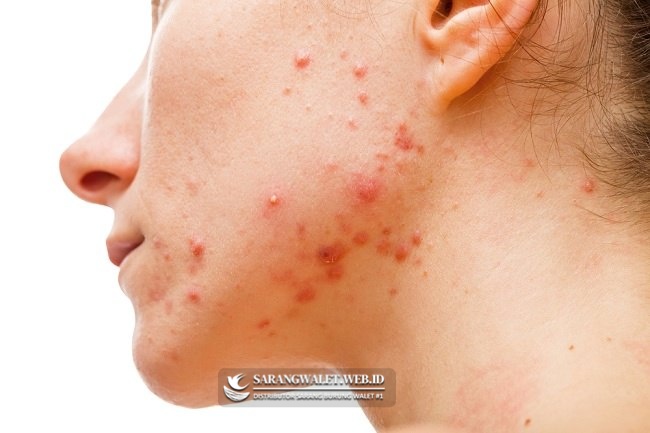 - Jerawat merah, seperti bisul, bintik merah, atau kumpulan bintik merah.
